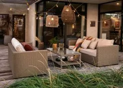 – Combineer de bank met een Funkia loungetafel van Brafab.