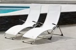 Samba from Fiam is designed by Francesco Favagrossa. A high quality sun bed and adjustable in 2 different positions. The chair is made of aluminum and textile which makes it weather resistant and maintenance free. Due to the materials it is light and very easy to take to the beach or out in the garden. Also works for public use as hotel. Wash off with sponge, water and a mild detergent if needed.